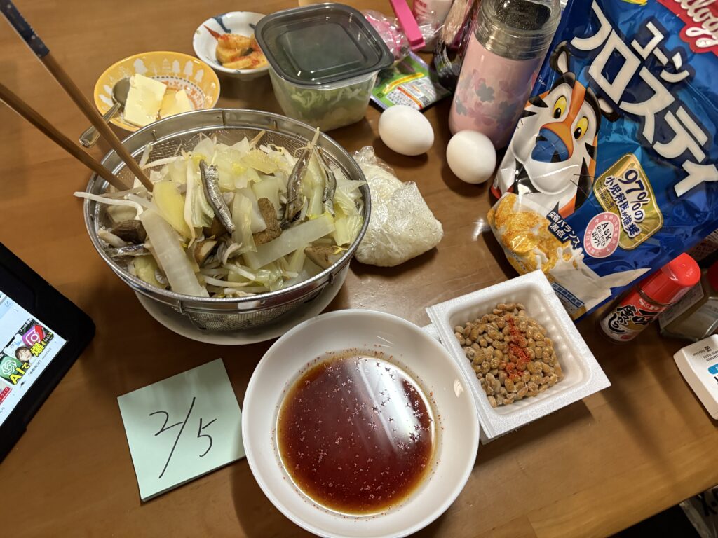 水にはあらかじめ水に煮干しをだしとしてつけておいきました。