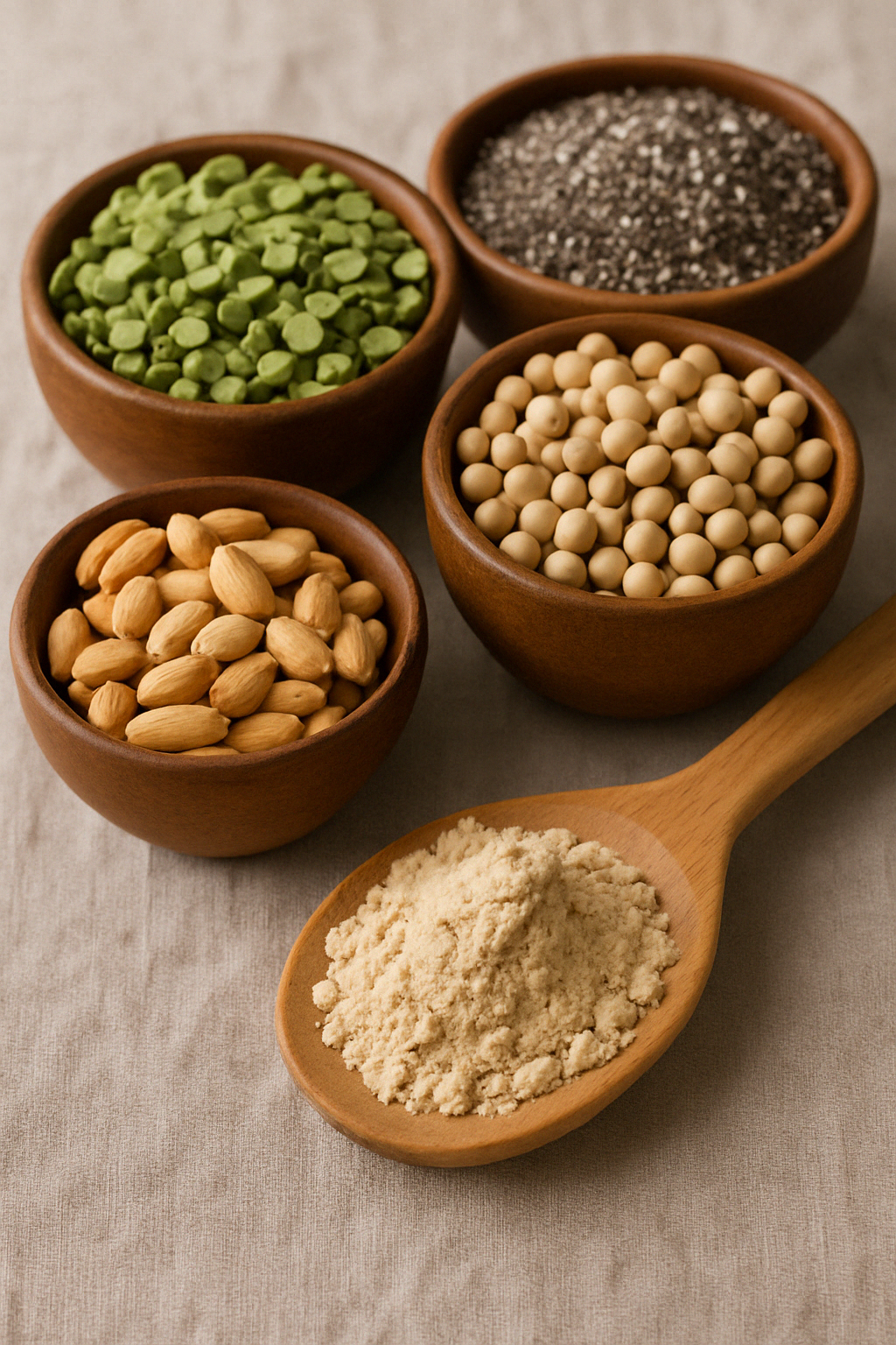 植物性プロテインは、大豆、エンドウ豆、玄米、ヘンプシードなど、植物由来の原料から作られたたんぱく質補助食品です。動物性プロテイン(ホエイやカゼイン)と違い、動物を使用しないため、環境への負荷が少ないことが特徴です。