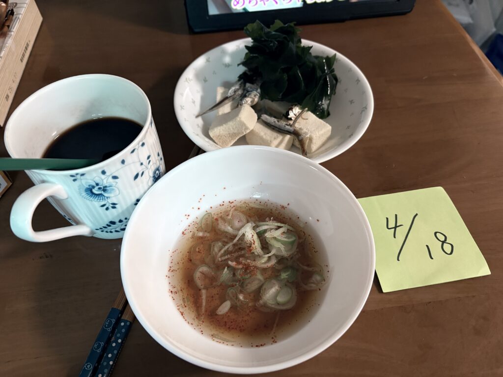 そして、ブラックコーヒー(200ml)で目と頭をシャキッとさせます。