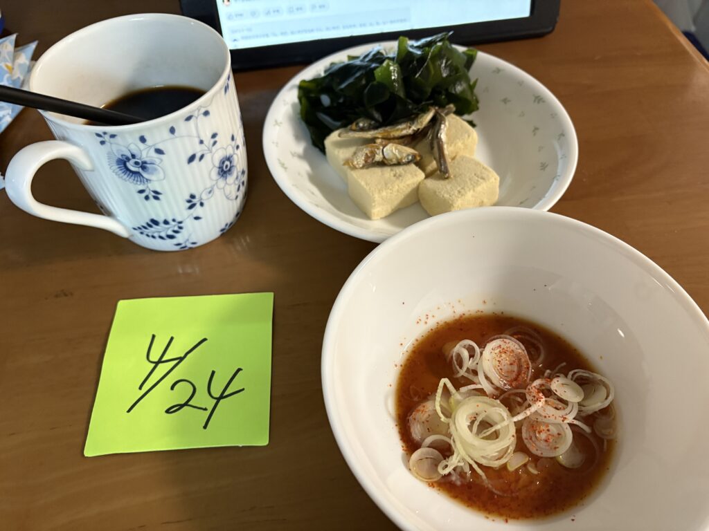 そして、ブラックコーヒー(200ml)で目と頭をシャキッとさせます。