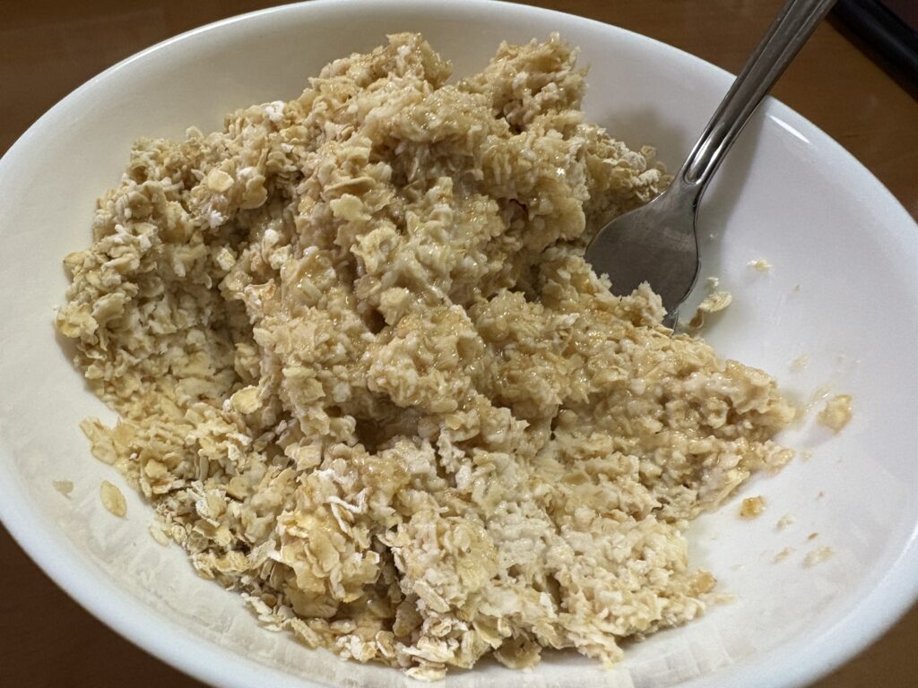 この段階で、あすけんアプリでPFCバランスをチェックしたら、炭水化物が不足していたため、オートミールで補充しました。