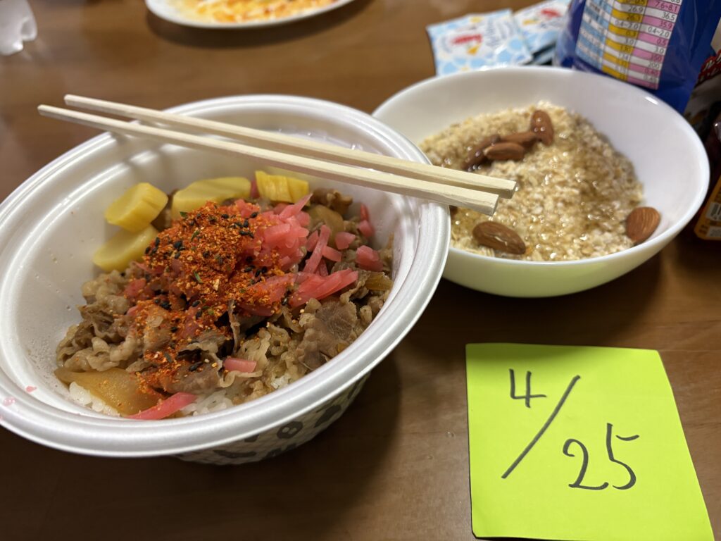 脂質がオーバーしそうなのと、炭水化物ヲかなり取らないといけないということのバランスを考慮した結果。