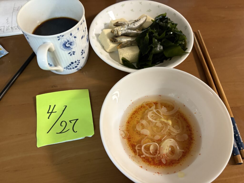 そして、ブラックコーヒー(200ml)で目と頭をシャキッとさせます。