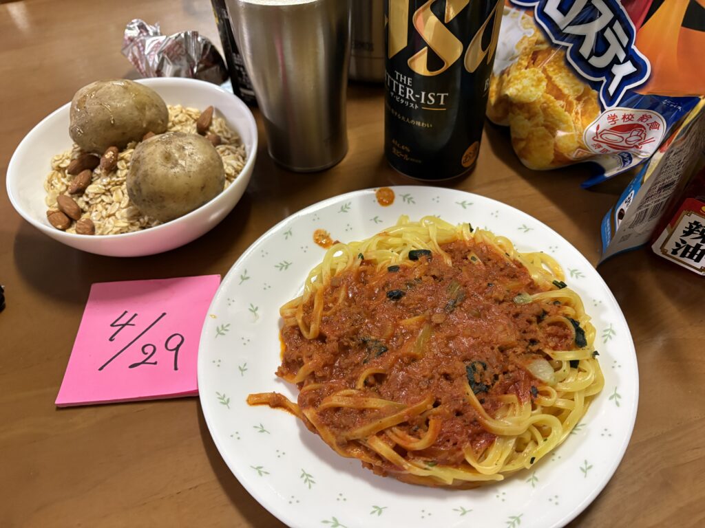 この段階で、あすけんアプリでPFCバランスをチェックしたら、炭水化物が不足していたため、オートミールとレンジで温めたじゃがいもで補充しました。