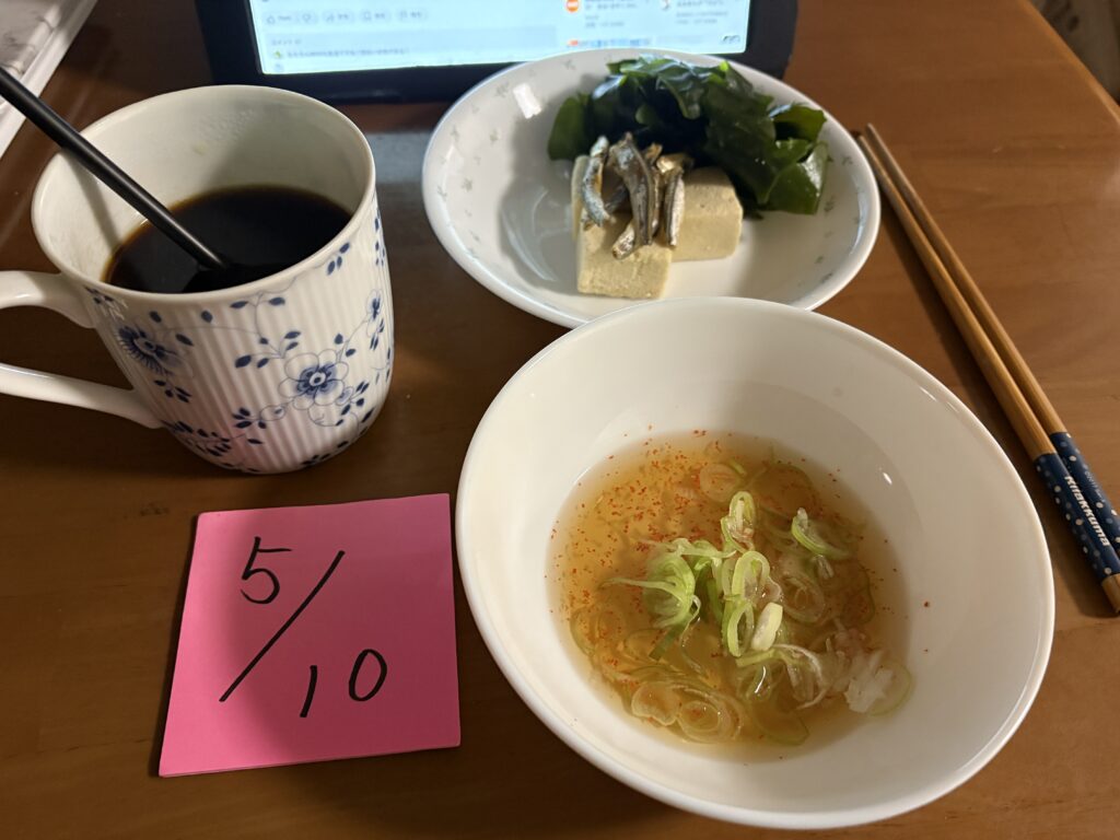 そして、ブラックコーヒー(200ml)で目と頭をシャキッとさせます。
