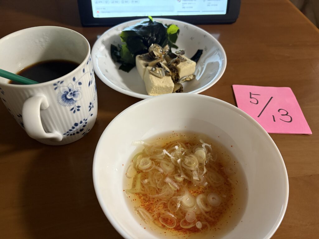 そして、ブラックコーヒー(200ml)で目と頭をシャキッとさせます。