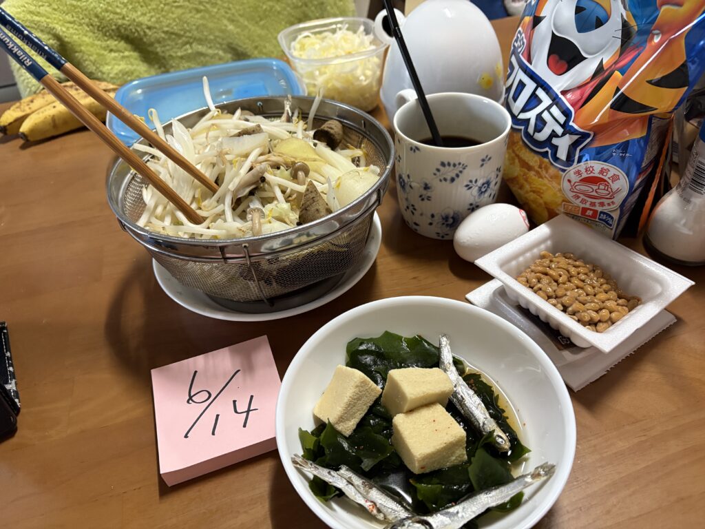 - 朝:オートミール+卵+プロテイン