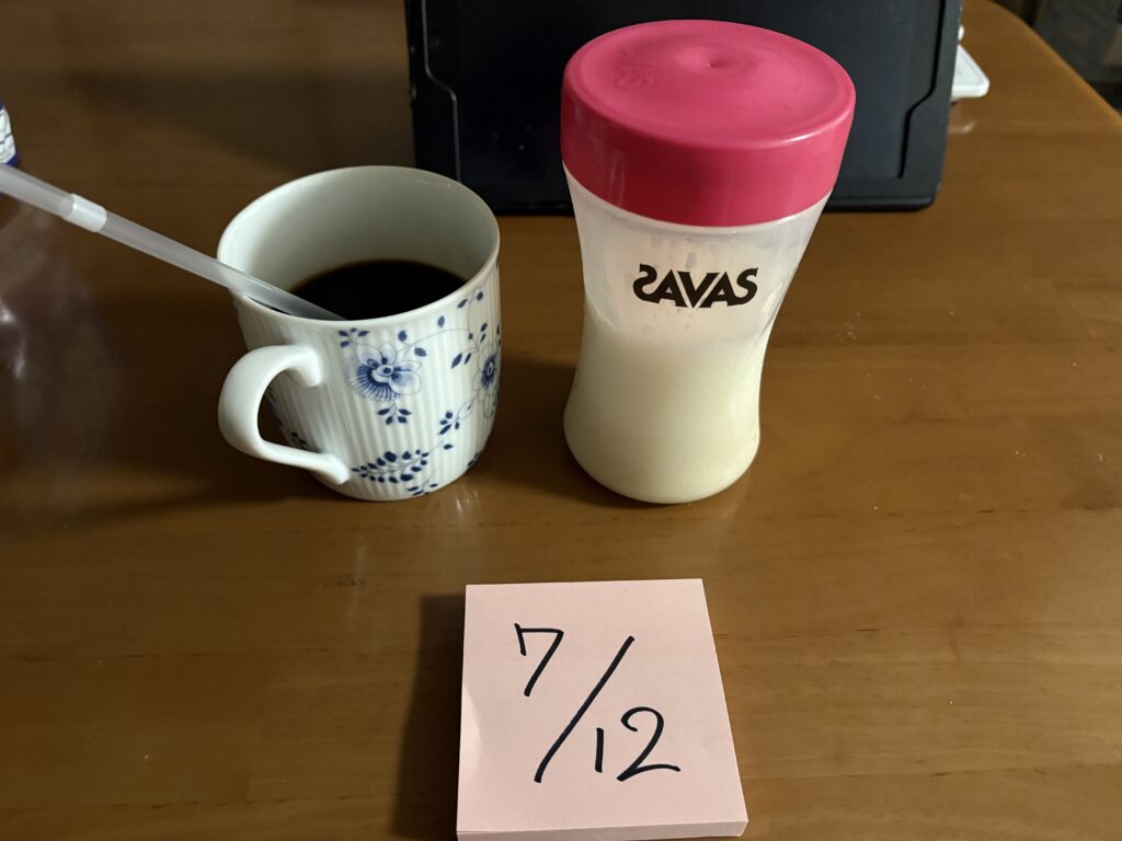 そして、ブラックコーヒー(200ml)で目と頭をシャキッとさせます。