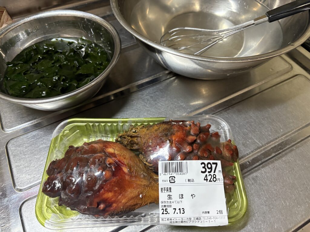 前回スーパーにホヤが売っていて、しかも安かったのでちょっと買わずに帰ったのを後悔したので、今回は買いました。w