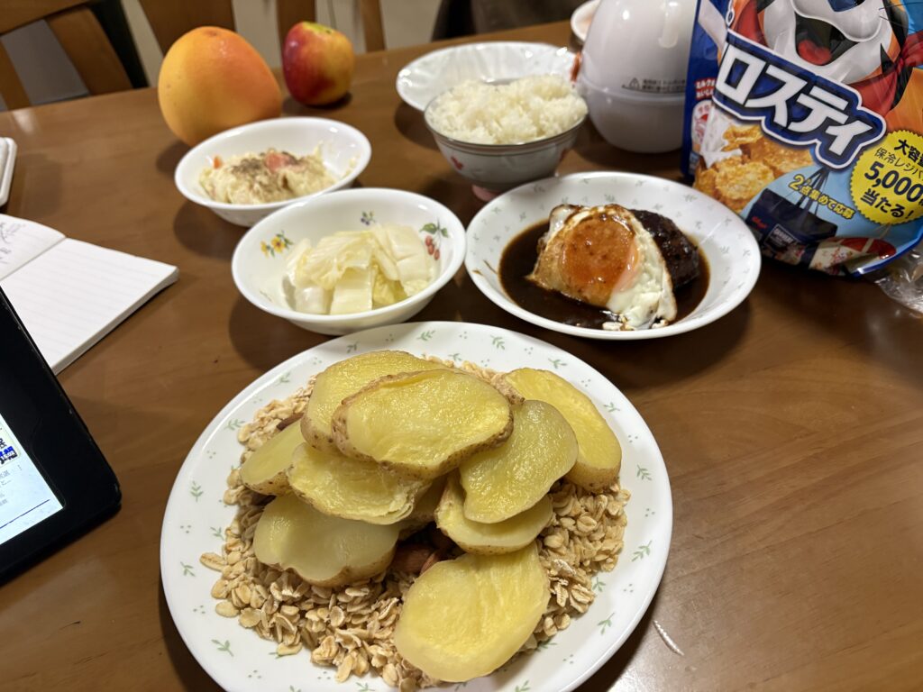 オートミールとレンジで温めたじゃがいも。