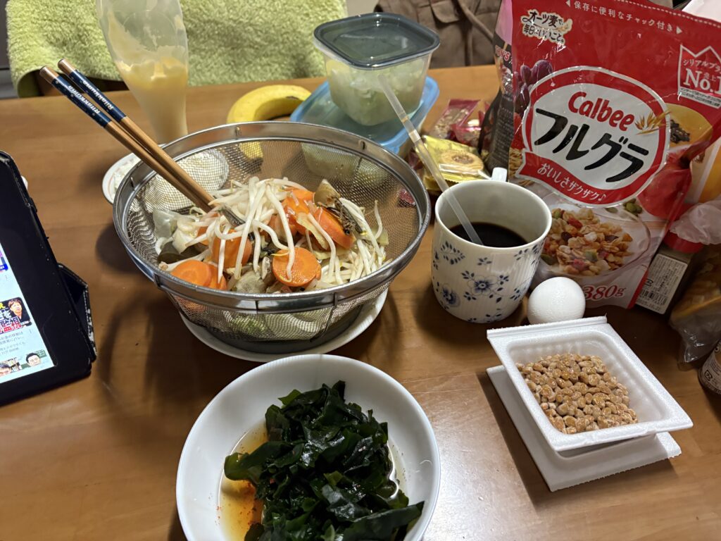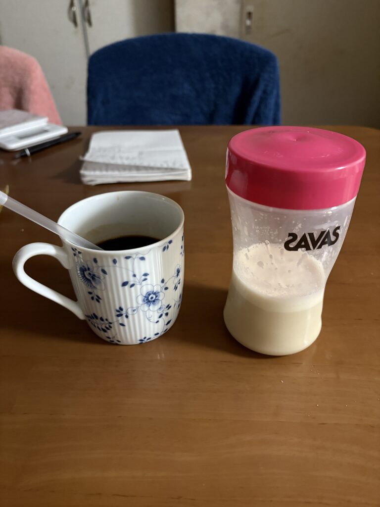そして、ブラックコーヒー(200ml)で目と頭をシャキッとさせます。