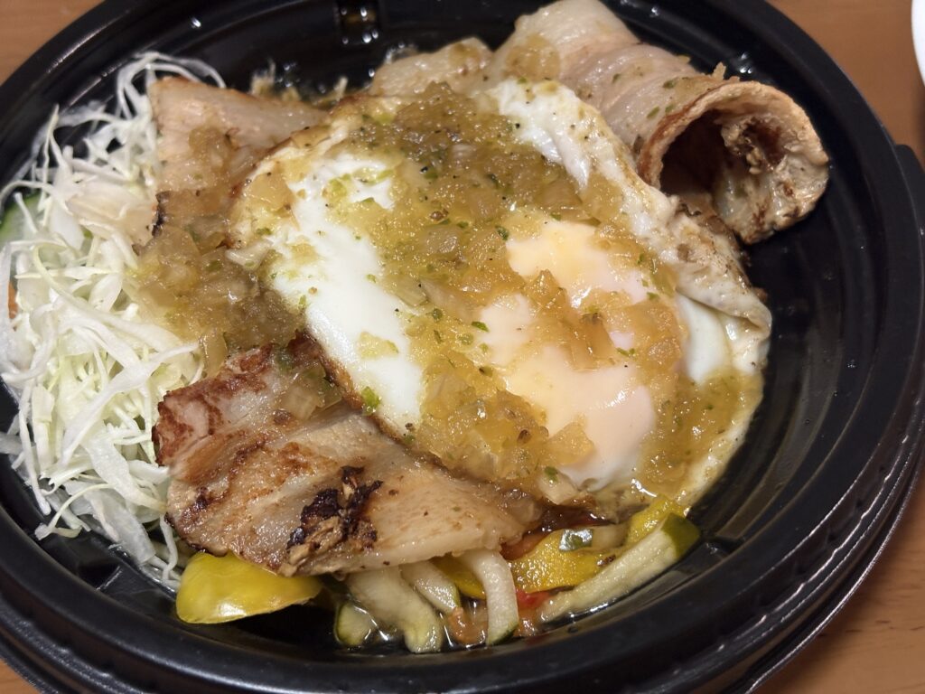 生卵に納豆(増えるわかめ)を加えて、そこにごはんと白菜漬、ねぎをのせてまぜまぜ