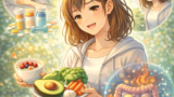 野菜サラダ(ブロッコリー、チーズ、コーン、昆布のぬかづけ、高野豆腐、白ごま、鶏の胸肉、煮卵、卵焼き)