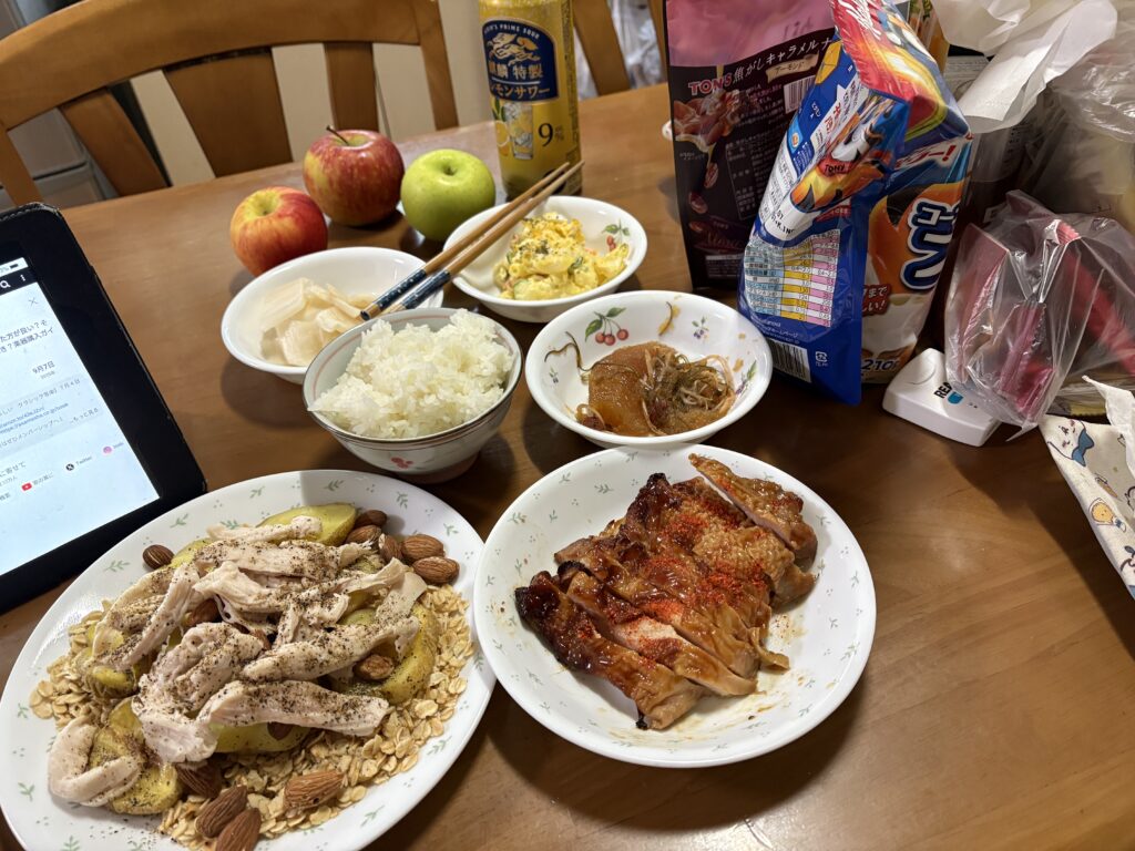 オートミールとレンジで温めたじゃがいもと鶏むね肉。
