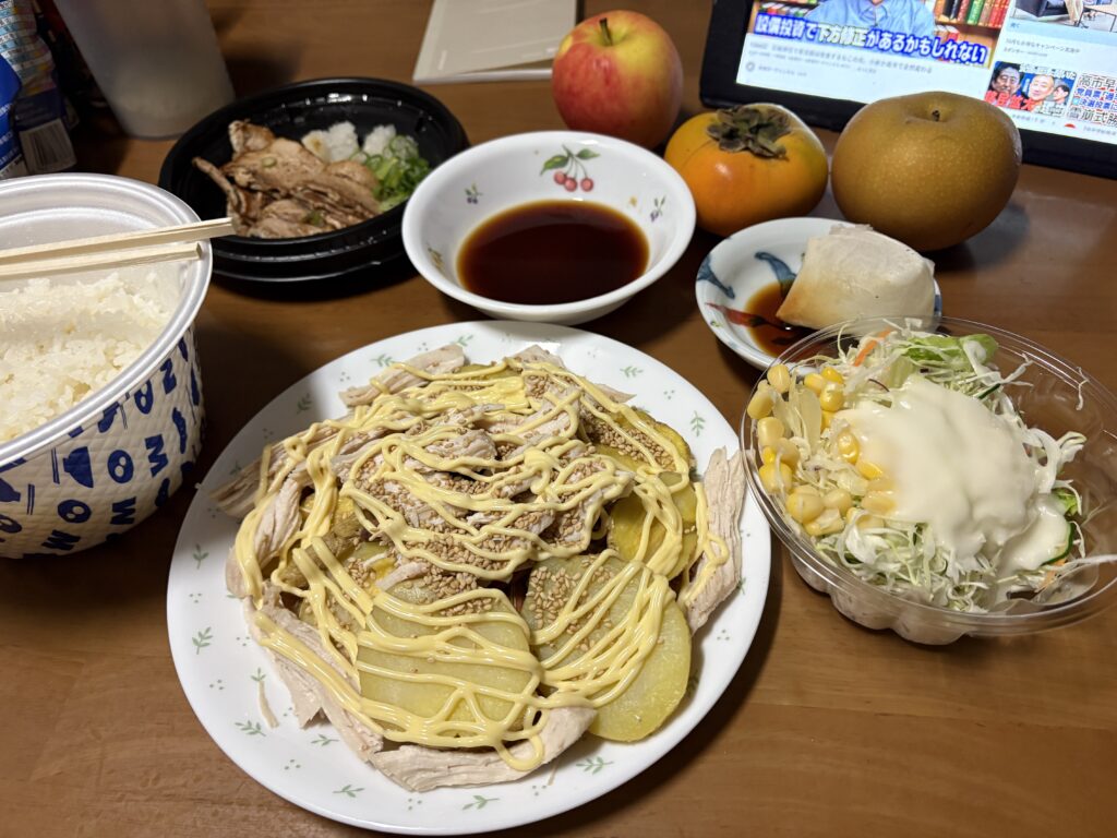 オートミールとレンジで温めたじゃがいもと鶏むね肉。