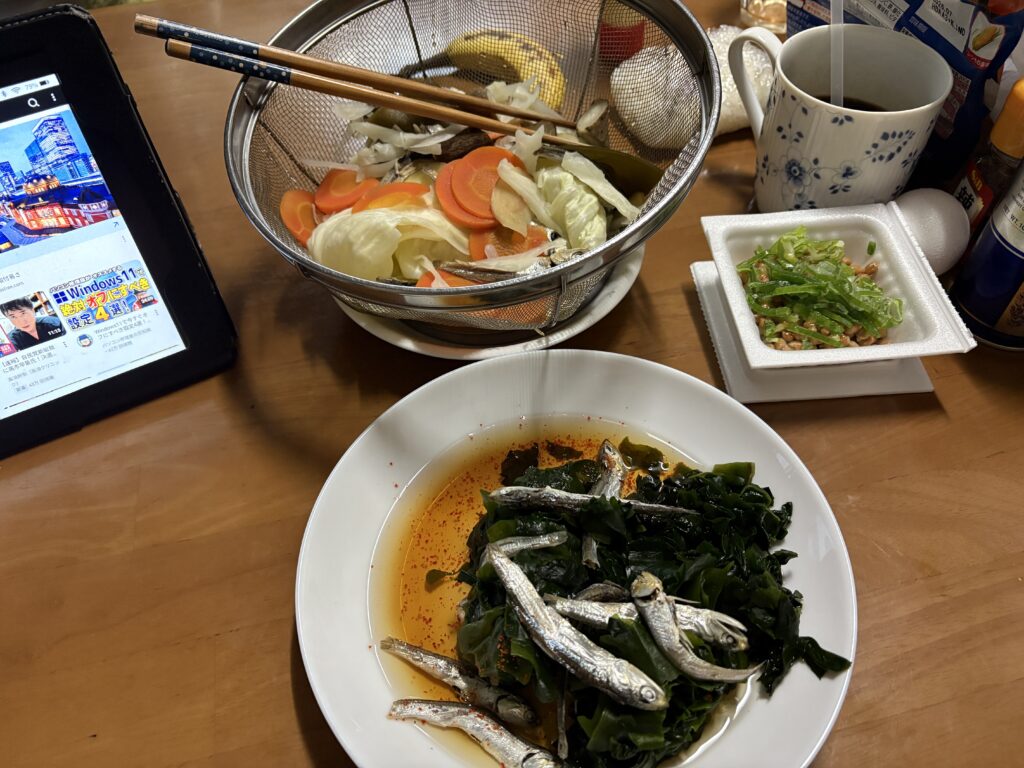 その後、朝の貴重な時間を使って作業してから今朝の朝食です。