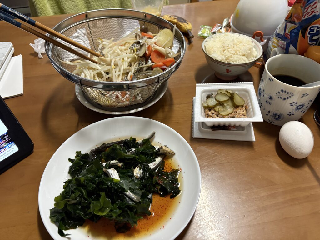 その後、朝の貴重な時間を使って作業してから今朝の朝食です。