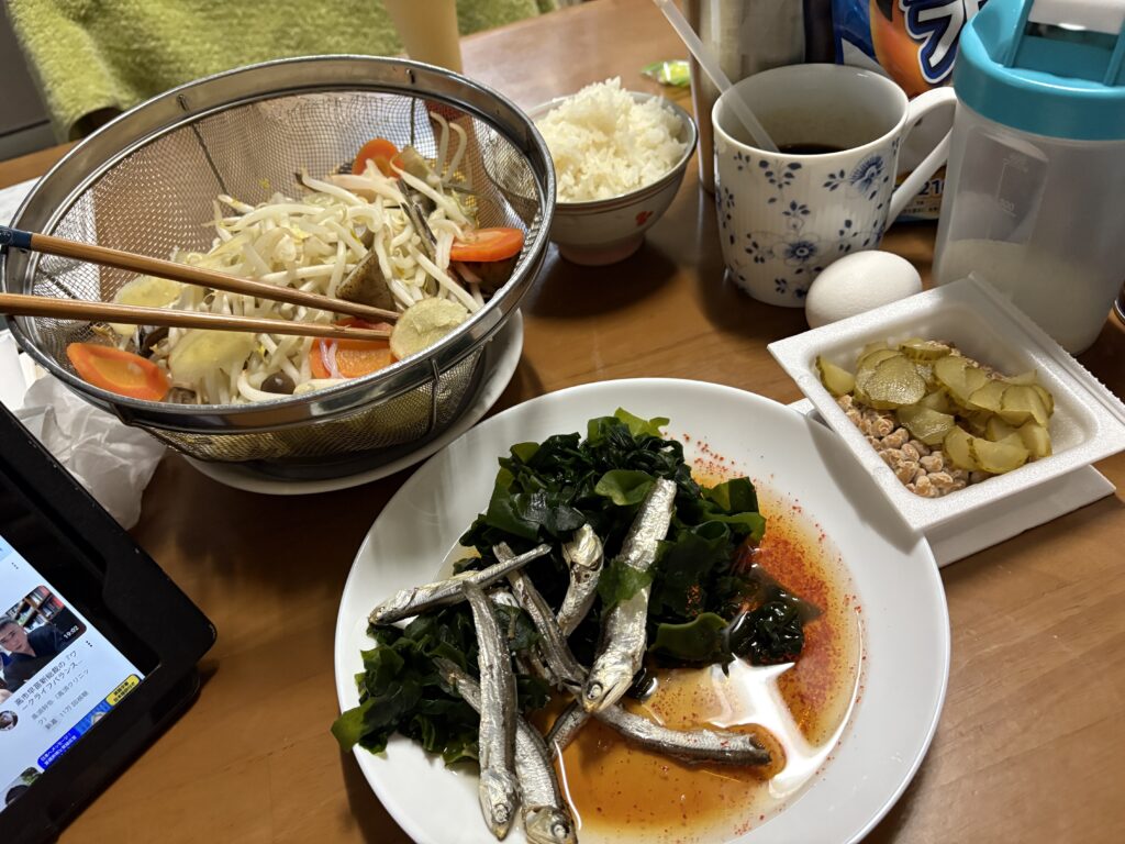 その後、朝の貴重な時間を使って作業してから今朝の朝食です。