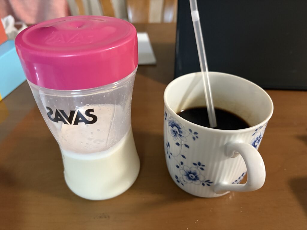 アイスコーヒーMサイズと三角チョコパイ いちごミルク味