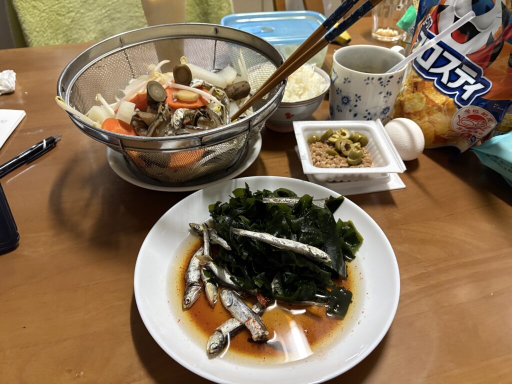 おにぎりや味噌汁、卵などのシンプルな食事でOKです。