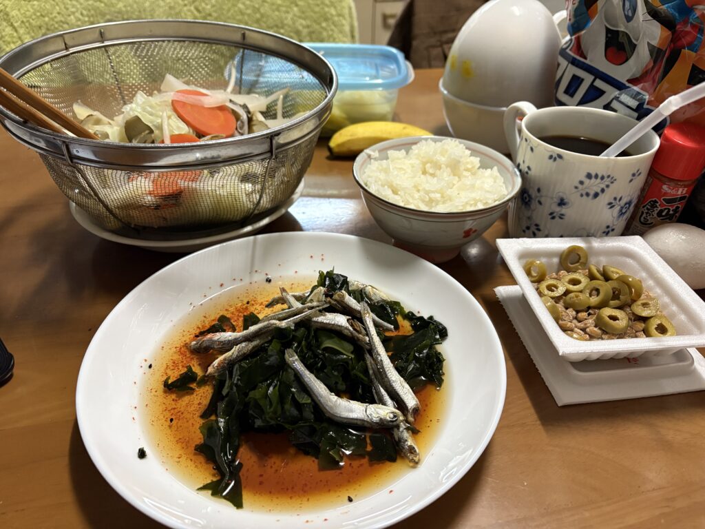 まずは朝の貴重な時間を使って作業してから今朝の朝食です。
