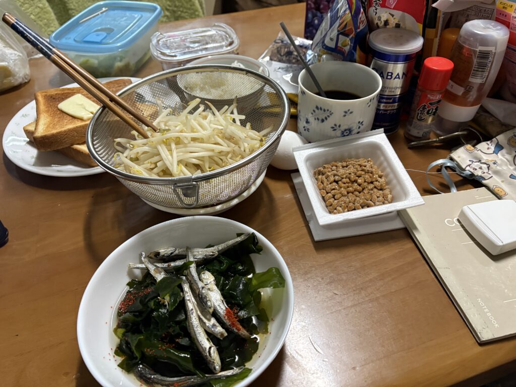 その後、朝の貴重な時間を使って作業してから今朝の朝食です。