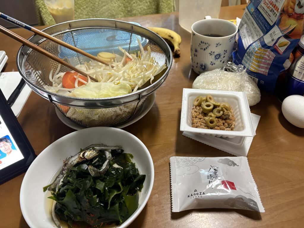 まずは、朝の貴重な時間を使って作業してから今朝の朝食です。