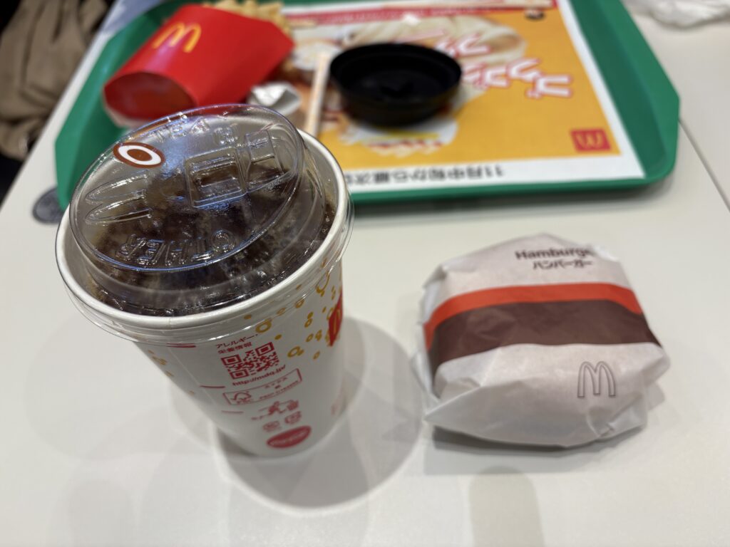 アイスコーヒーSサイズとハンバーガー