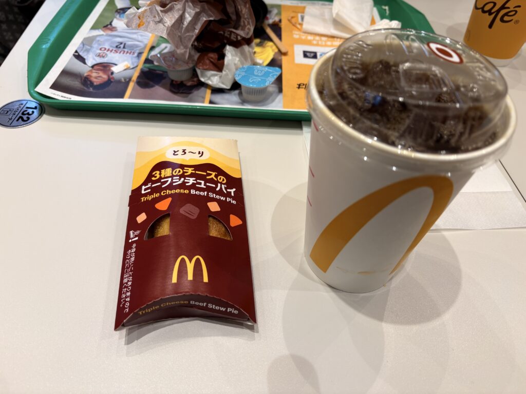 アイスコーヒーSサイズととろーり3種のチーズのビーフシチューパイ