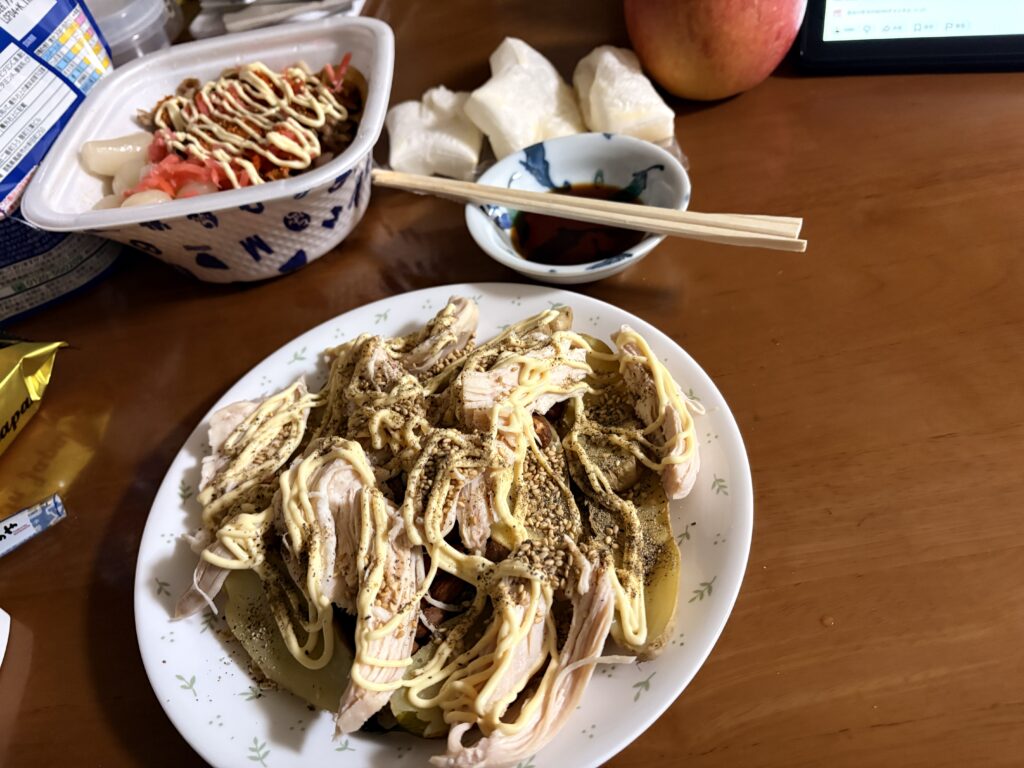さらにらっきょう漬け、白ごまとマヨネーズをかけました。