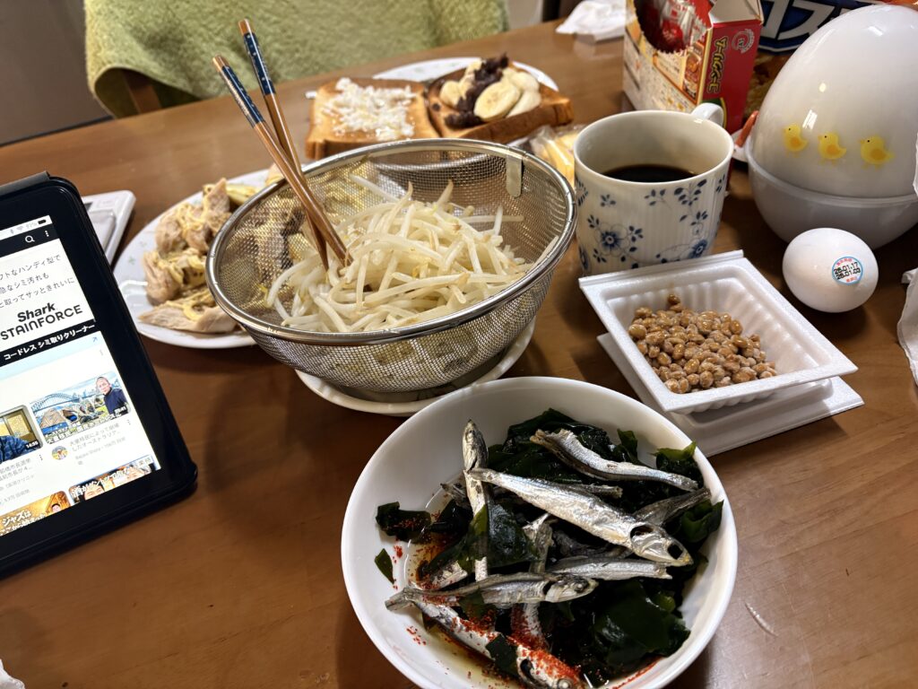 その後、朝の貴重な時間を使って作業してから今朝の朝食です。