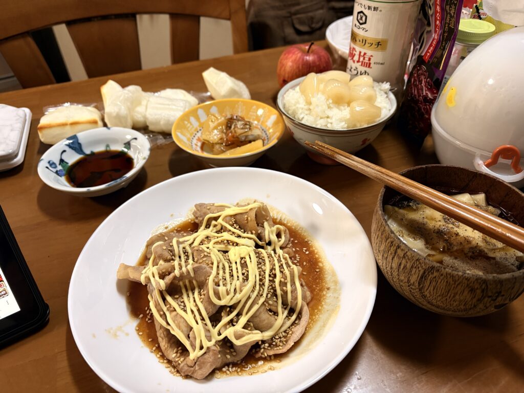 その後、朝の貴重な時間を使って作業してから今朝の朝食です。