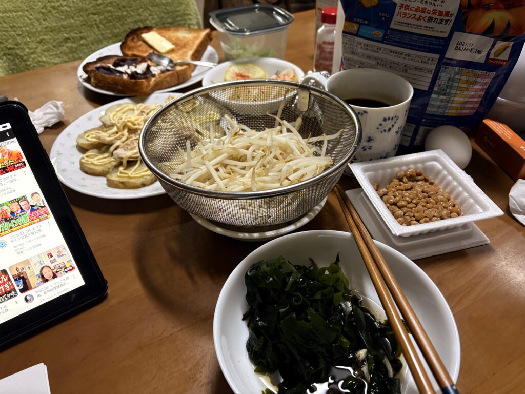 その後、朝の貴重な時間を使って作業してから今朝の朝食です。