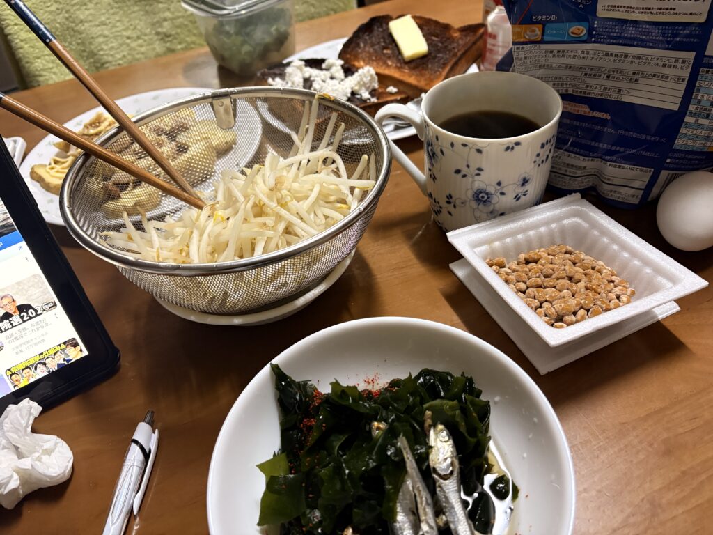 その後、朝の貴重な時間を使って作業してから今朝の朝食です。