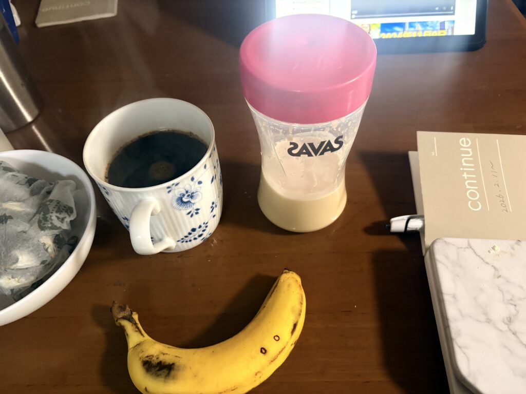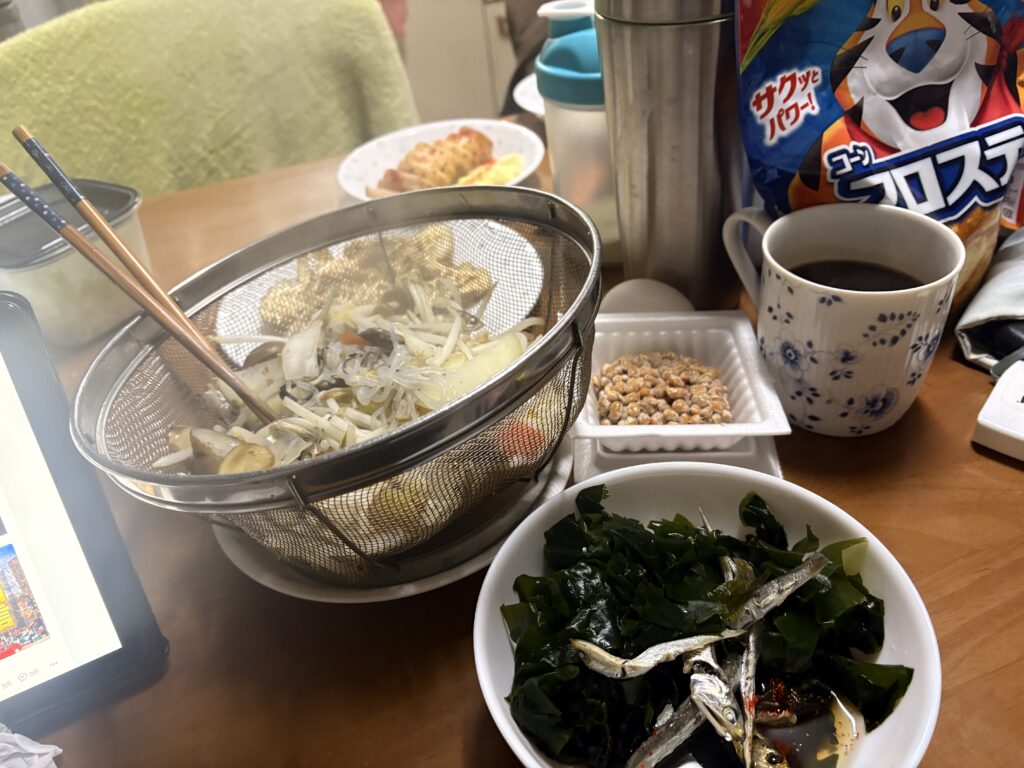 その後、朝の貴重な時間を使って作業してから今朝の朝食です。