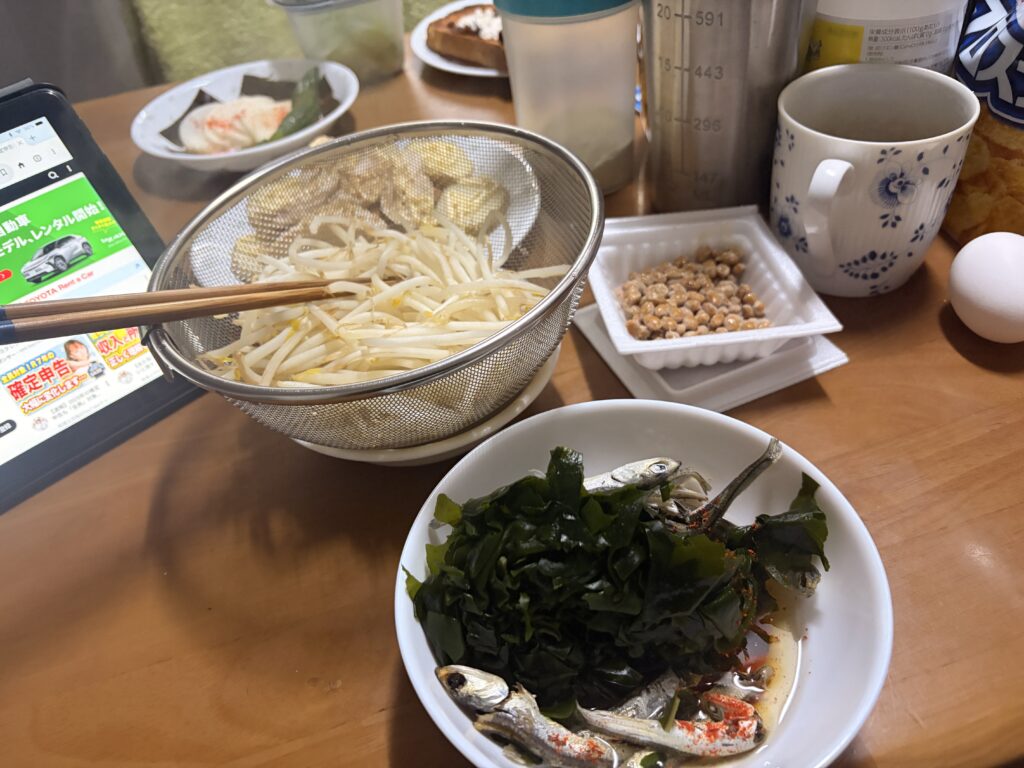 その後、朝の貴重な時間を使って作業してから今朝の朝食です。