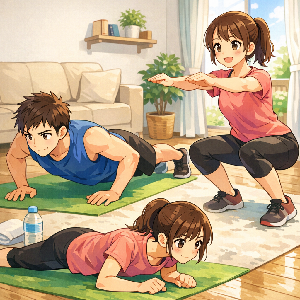 自重トレーニングは、自宅で手軽に始められる運動です。