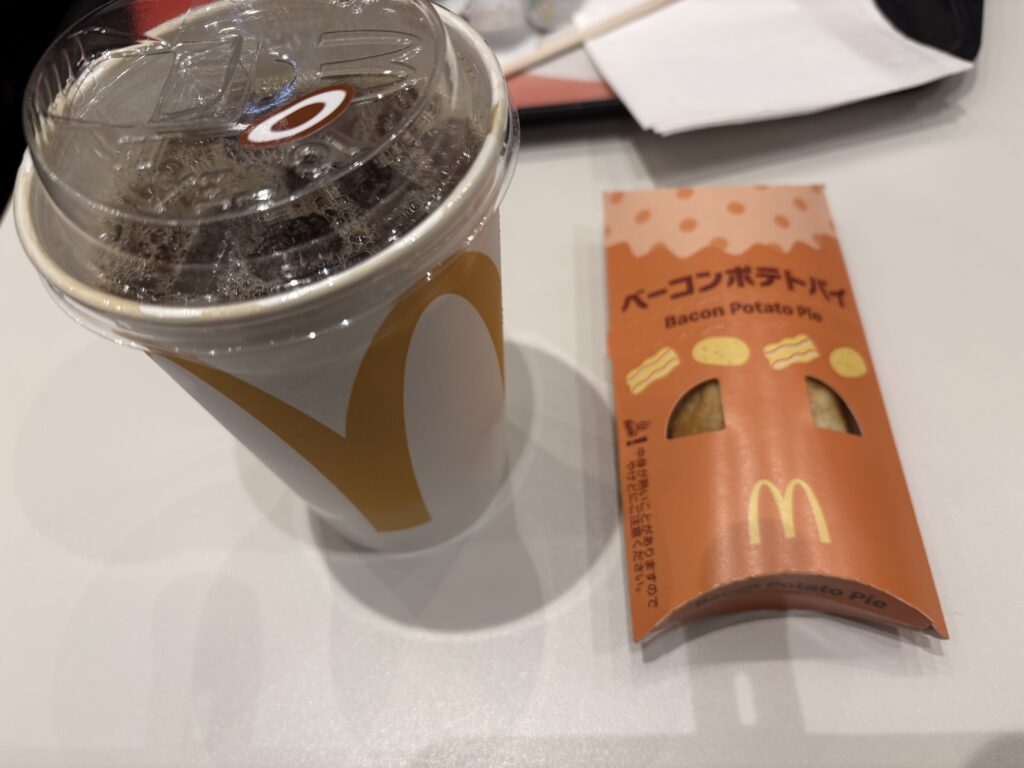 アイスコーヒーMサイズと期間限定マクドナルド ベーコンポテトパイ