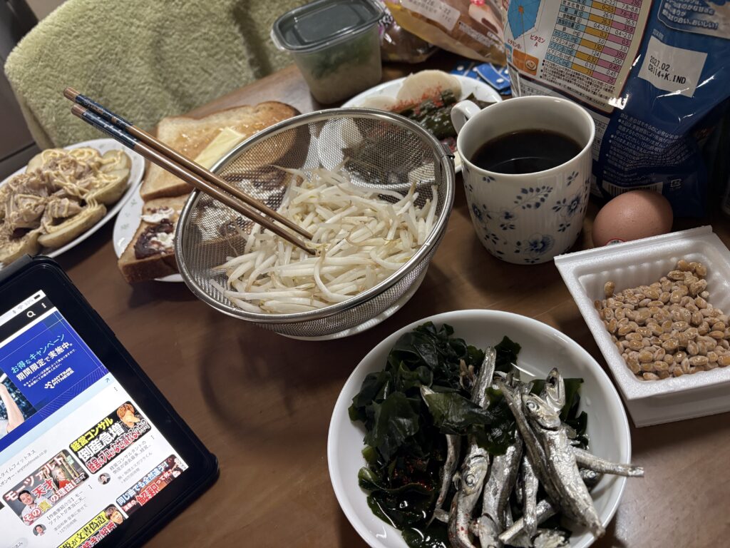その後、朝の貴重な時間を使って作業してから今朝の朝食です。