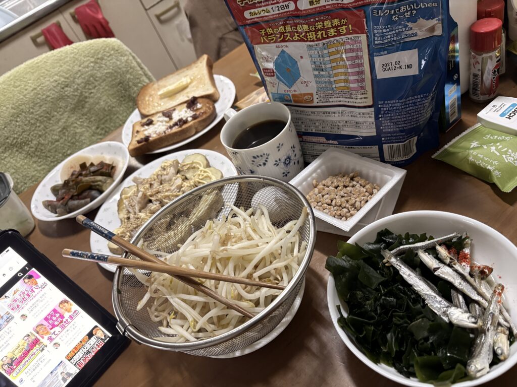 その後、朝の貴重な時間を使って作業してから今朝の朝食です。